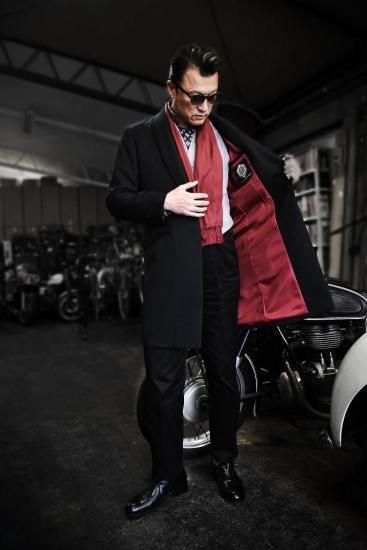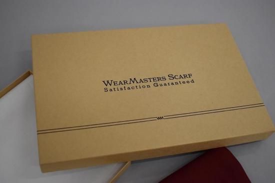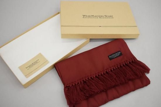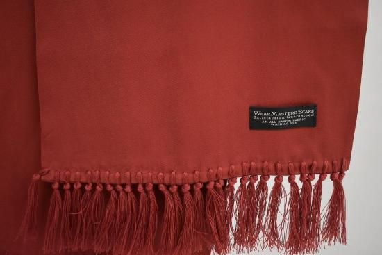 Attractionsに別注したワインレッドのレーヨンスカーフ。